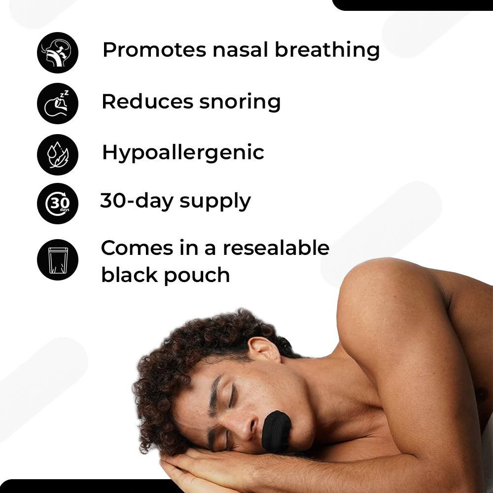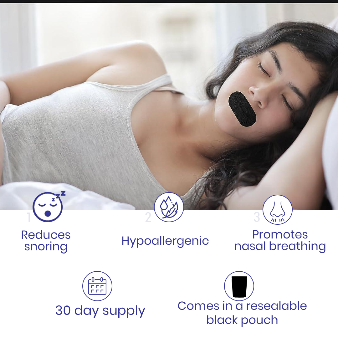 The Mouth Tape gently encourages your mouth to stay closed while you sleep, promoting nasal breathing, which improves oxygen flow and reduces snoring. This simple, safe solution helps you sleep soundly throughout the night.